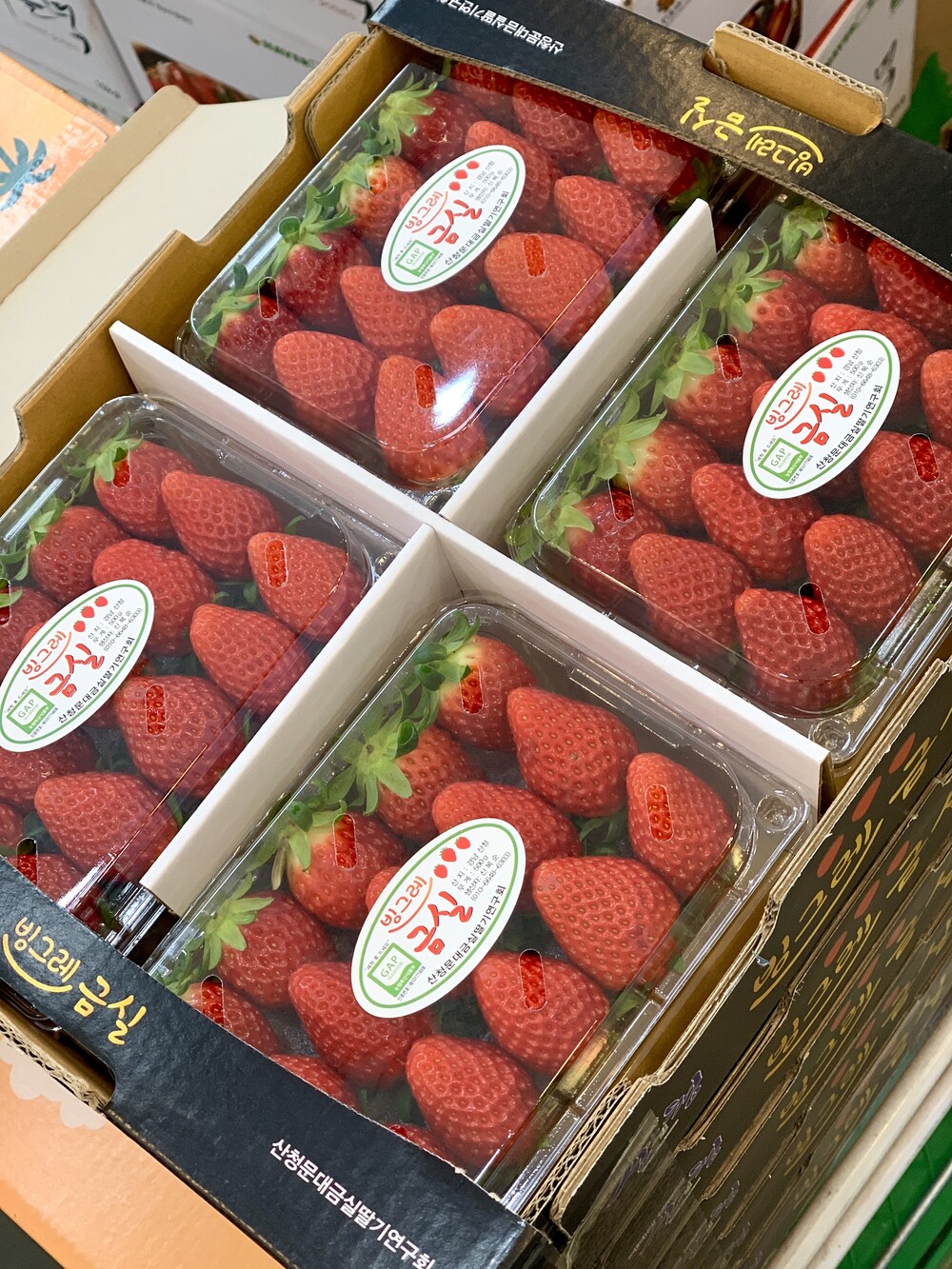 포장 케이스 밖으로 튀어나온 딸기들이 박스 옆면에 맞닿아서 눌린게 나올수 있어요.