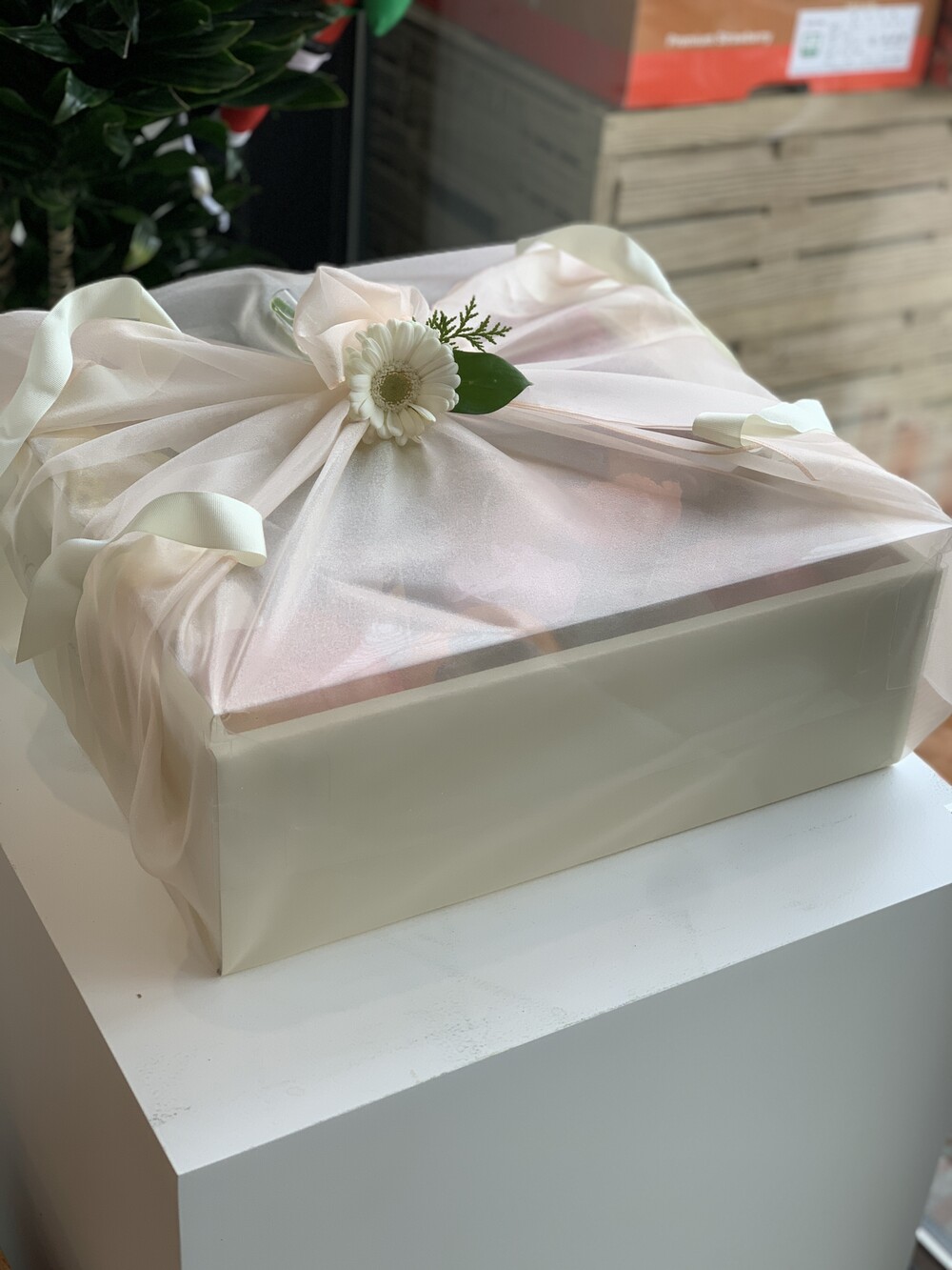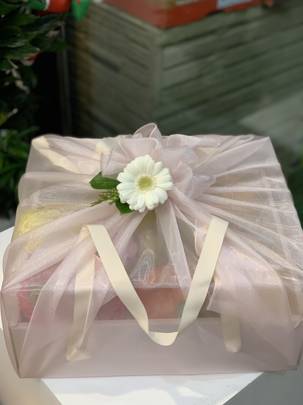 크리스탈 보자기 추가시 생화 코사지 포함입니다.